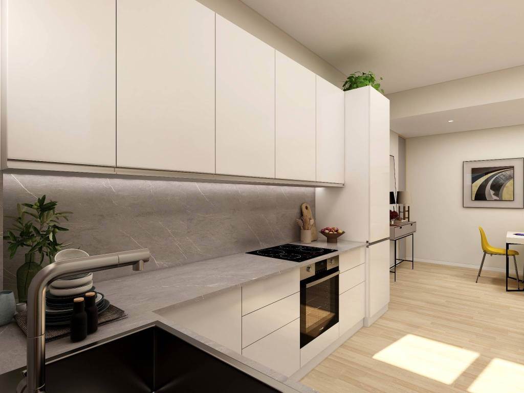 QUINTO STAMPI (vicinanze tram 15 / MM2 e Fiordaliso) – ultimi 2 appartamenti “tipo loft” nuovi in classe energetica “A” . L’appartamento n.2 di mq 65 commerciali è così composto: ingresso con disimpegno, soggiorno con ampia zona cucina e pranzo, disimpegno notte, camera da letto, servizio finestrato. Finiture interne selezionate: pavimentazione a correre in gres formato cm 60 x 120, porte interne bianche design, infissi nuovi a basso emissivo con zanzariere e inferriate, videocitofoni a colori, climatizzazione in pompa di calore dual split, piatti doccia in resina con box doccia in cristallo e tanto altro. E' possibilità acquistare un posto auto privato interno. Gli appartamenti sono molto luminosi ed ariosi essendo doppio esposti con ampie finestre e soffitti H 2,9 m. Consegna prevista gennaio 2026